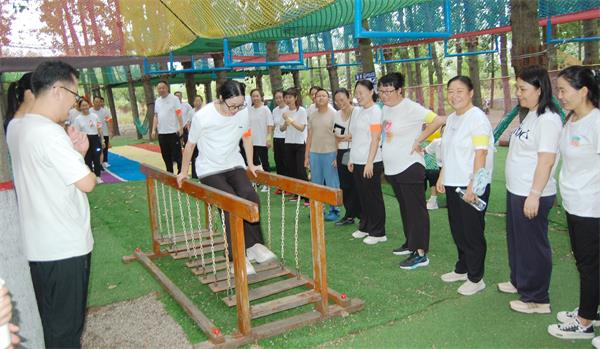 重頭戲“快樂(lè)向前沖”闖關(guān)賽把午后的熱度推至頂點(diǎn)。四支戰(zhàn)隊(duì)按圖索驥,跨越獨(dú)木橋、穿越充氣拱門(mén)、翻越高低臺(tái),計(jì)時(shí)器滴答作響。摔倒了,隊(duì)友一把拉起;迷路了,遠(yuǎn)處口號(hào)指引方向。最炸裂的“蒙眼尖叫雞互打”壓軸登場(chǎng)——蒙眼選手循聲揮動(dòng)充氣錘,雞叫與歡笑齊飛,工作的疲憊瞬間清零。