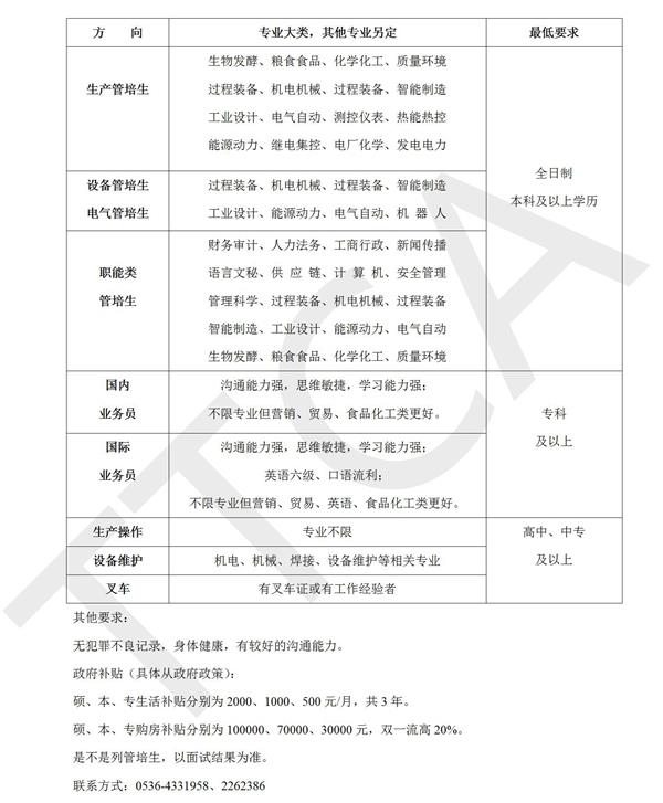 人力資源部聯(lián)系電話:0536-4331958 或 2262386